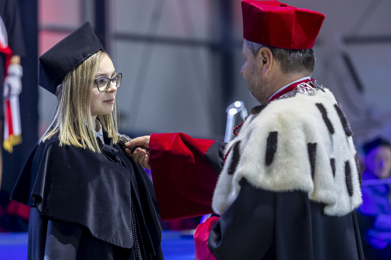 Ważną częścią uroczystości było ślubowanie przedstawicieli studentów pierwszego roku, które poprowadziła prorektor ds. kształcenia dr hab. Iwona Włoch, prof. PRz, oraz przedstawicielki doktorantów Szkoły Doktorskiej Nauk Inżynieryjno-Technicznych PRz, które poprowadził prorektor ds. nauki dr hab. inż. Lesław Gniewek, prof. PRz. JM Rektor dokonał pasowania studentów i doktorantów.