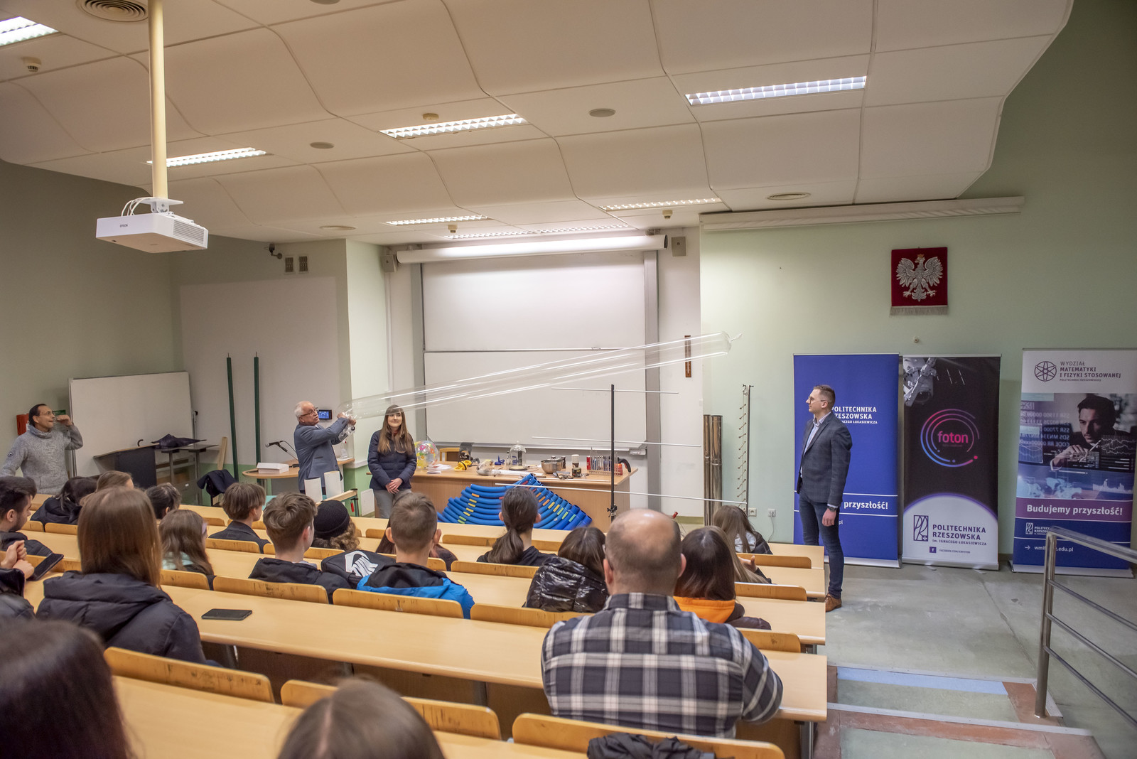 Podczas obu dni zgromadzoną młodzież uroczyście powitali rektor Politechniki Rzeszowskiej prof. dr hab. inż. Piotr Koszelnik oraz prorektor ds. kształcenia dr hab. Iwona Włoch, prof. PRz. Władze dziekańskie WMiFS w krótkiej prezentacji przedstawiły kierunki studiów prowadzone na wydziale oraz perspektywy zatrudnienia absolwentów. Inauguracje Dni Otwartych uświetniły występem artystycznym studentki kierunku matematyka Katarzyna Biela i Klaudia Bukała. Młodzież miała okazję uczestniczenia w wykładach i warsztatach, które zostały podzielone na trzy główne panele związane z kierunkami studiów: inżynierią i analizą danych, inżynierią w medycynie oraz matematyką. Panele zostały uzupełnione o pokazy z fizyki, a także o zwiedzanie wydziałowych laboratoriów oraz biblioteki. Wykłady, warsztaty i pokazy prowadzili nauczyciele akademiccy prowadzący zajęcia na wymienionych kierunkach, lekarze oraz pracownicy zaprzyjaźnionych dwóch firm medycznych ImplantCast i STRING, jak również studenci kół naukowych: Machine Learning, X-med oraz Foton. Podczas Dni Otwartych aktywny udział wzięli studenci z Wydziałowego Samorządu Studenckiego oraz studenci WMiFS, którzy chętnie opowiadali uczniom o studiach w trakcie zwiedzania wydziału.