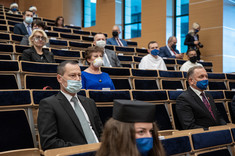 Głos zabrali również przewodniczący Parlamentu Studentów Rzeczypospolitej Polskiej Dominik Leżański oraz przewodniczący Samorządu Studenckiego naszej uczelni Michał Klimczyk, który w swoim wystąpieniu podkreślił m.in. zalety studiowania na naszej uczelni i zachęcał studentów pierwszego roku do działalności w organizacjach studenckich.