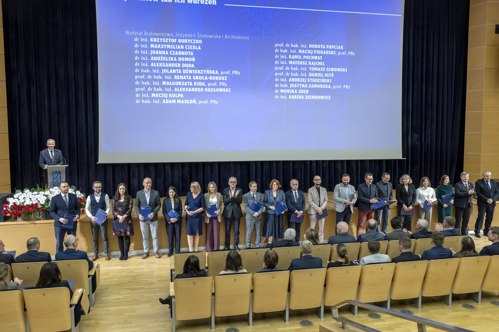 • z Wydziału Budownictwa, Inżynierii Środowiska i Architektury: dr hab. inż. Bernardeta Dębska, prof. PRz, dr inż. Andżelika Domoń, dr inż. arch. Joanna Figurska-Dudek, prof. dr hab. inż. Galyna Kalda, dr hab. inż. arch. Anna Martyka, prof. PRz, dr hab. inż. Adam Masłoń, prof. PRz, dr inż. Michał Musiał, prof. dr hab. inż. Dorota Papciak, dr inż. Beata Piotrowska, dr inż. Danuta Proszak-Miąsik, dr hab. inż. Agnieszka Stec, prof. PRz, dr inż. Grzegorz Straż, dr Monika Zdeb, dr inż. Jakub Żywiec,