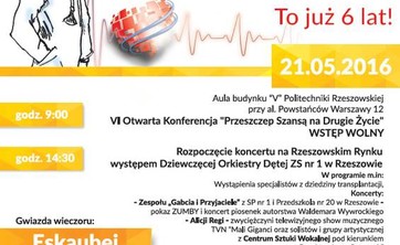 Zapraszamy do udziału w konferencji "Przeszczep drugą szansą na życie." Konferencja odbędzie się 21 maja 2016 r. w Politechnice Rzeszowskiej w ramach Rzeszowskiego Święta Transplantacji
