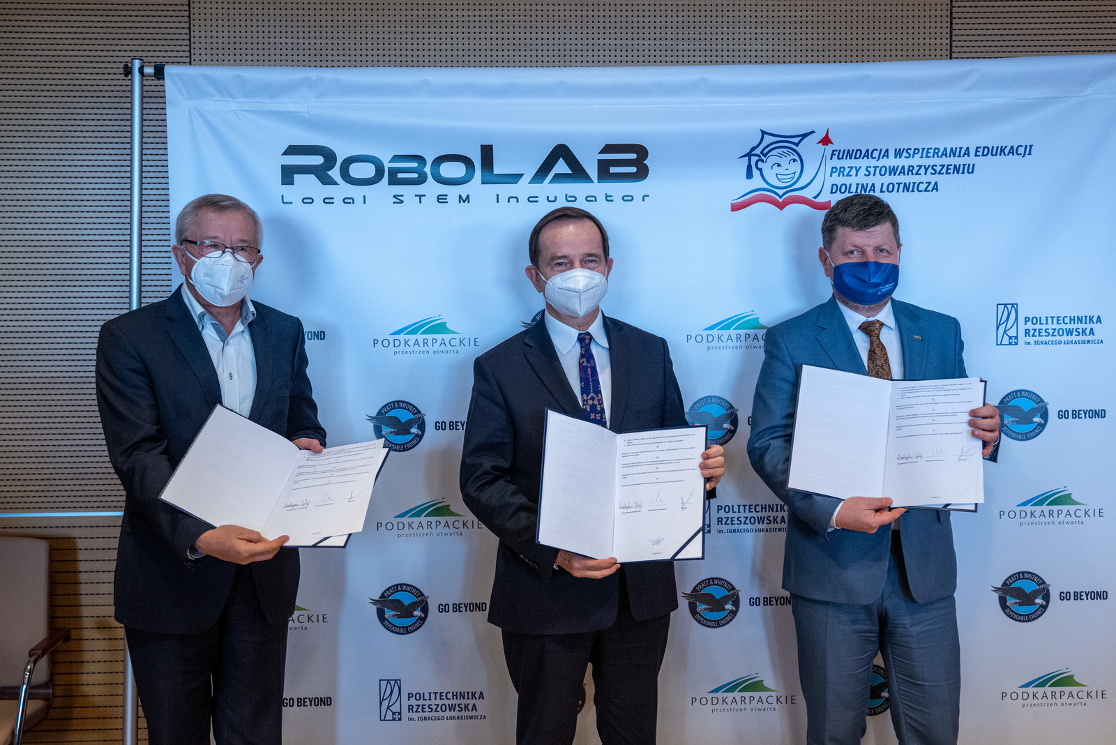 Porozumienie dotyczące powołania do życia projektu RoboLAB podpisali 9 marca br. marszałek województwa podkarpackiego Władysław Ortyl, rektor Politechniki Rzeszowskiej prof. dr hab. inż. Piotr Koszelnik oraz prezes Zarządu Stowarzyszenia „Dolina Lotnicza” i prezes Pratt & Whitney Rzeszów Marek Darecki.