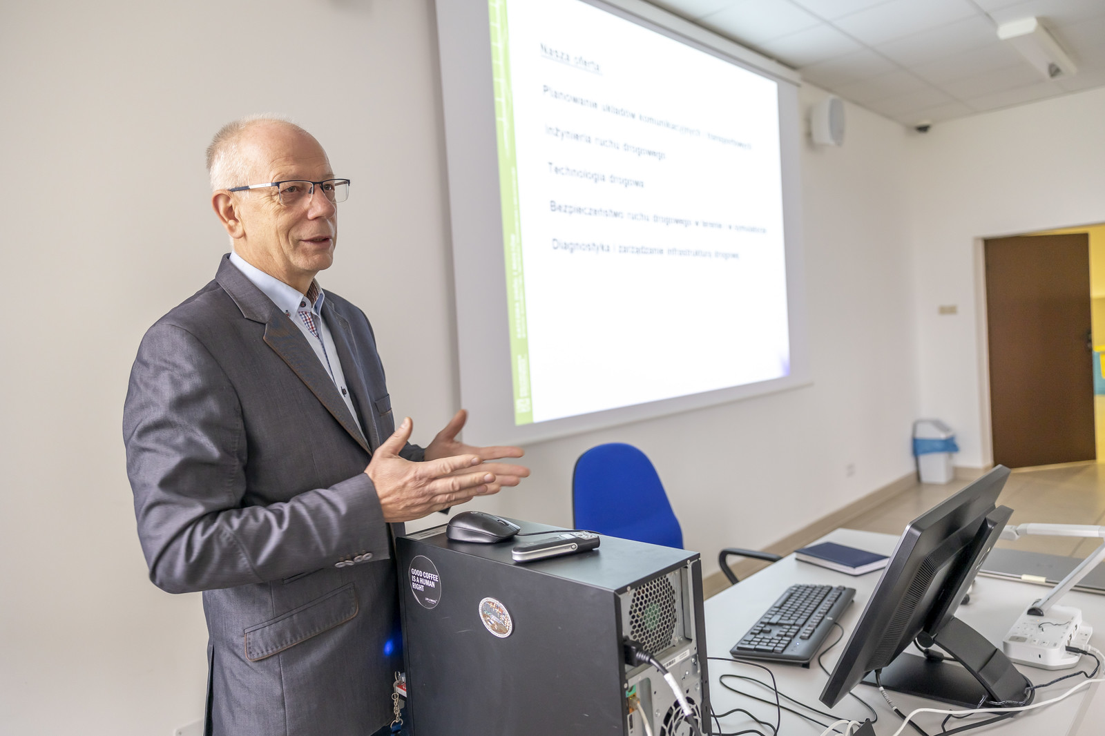 Dr inż. L. Bichajło prezentuje możliwości badawcze Katedry Dróg i Mostów.