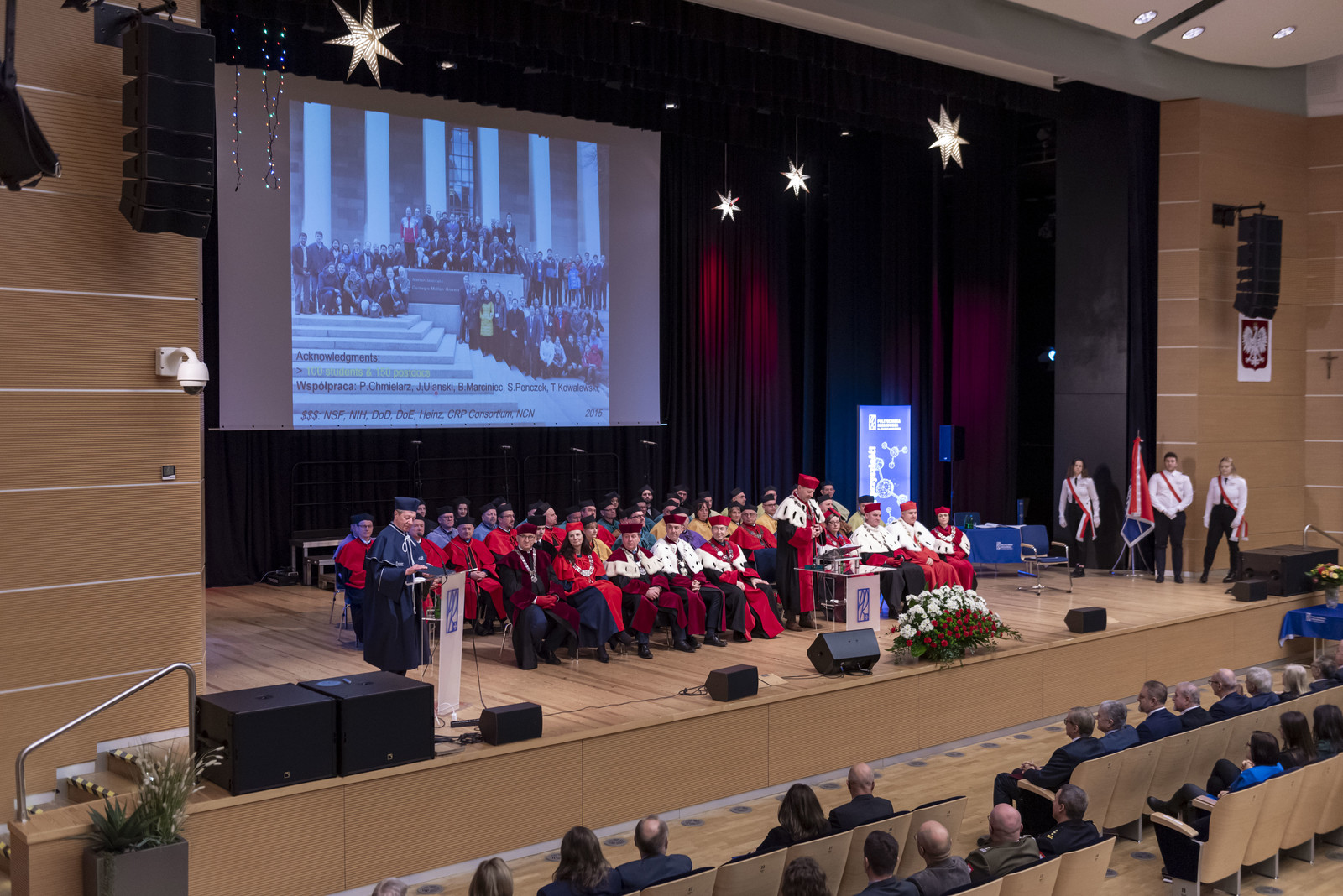 Rektor prof. Piotr Koszelnik w asyście promotora prof. Pawła Chmielarza i dziekan Wydziału Chemicznego prof. Doroty Antos wręczył dyplom doktorowi honoris causa Politechniki Rzeszowskiej prof. Krzysztofowi Matyjaszewskiemu, tym samym nadał mu tytuł doktora honoris causa oraz wszystkie związane z nim przywileje. Doktor honoris causa dokonał wpisu do Albumu Doktorów Honoris Causa Politechniki Rzeszowskiej, a następnie wygłosił wykład.